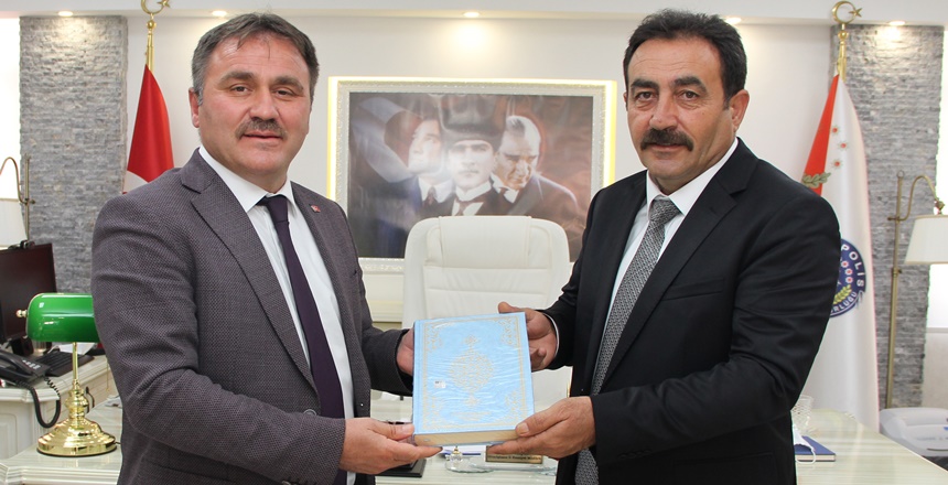 Gümüşhane Belediye Başkanı Ercan Çimen, Cumhurbaşkanlığı Kararnamesi ile Gümüşhane İl Emniyet Müdürlüğüne atanan Celal Taşçı’ya hayırlı olsun ziyaretinde bulunarak Kuran-ı Kerim hediye etti.