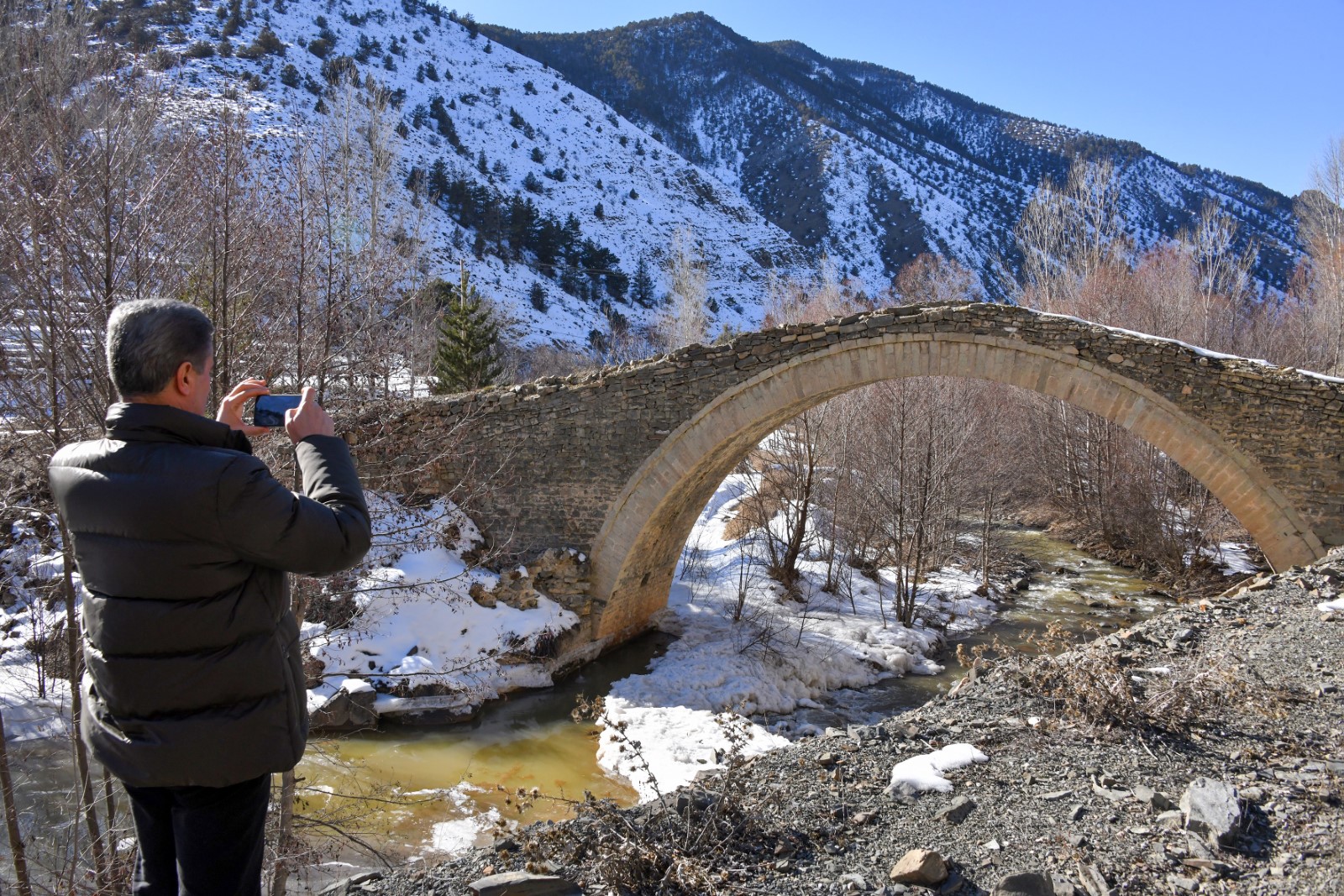 Yağlıdere köyü sınırlarında yer alan tarihi Bazbent Köprüsü’nde de incelemelerde bulunan Vali Baruş, köprünün fotoğrafını çekip hatıra fotoğrafı da çektirerek tarihi mirasın gelecek nesillere aktarılması amacıyla yapının korunmasını ve tahrip olan alanların onarılması için gerekli çalışmaların başlatılmasını istedi.