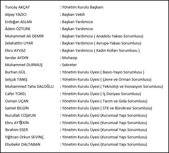Yeni Yönetim kurulu görev dağılımı şu şekilde oluştu: