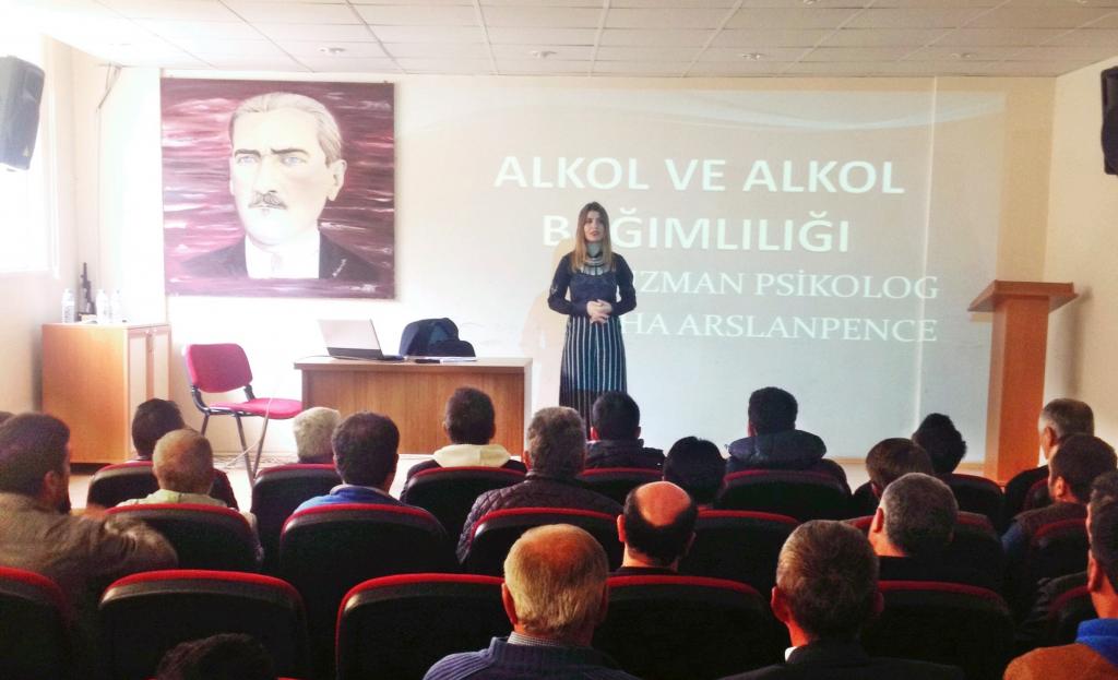 Söz konusu seminerde Uzman Psikolog Saliha ARSLANPENCE’nin; Bağımlılık, bağımlılık tedavileri, alkol ve alkol bağımlılığı, başlama nedenleri, alkolün zararları, alkolün yol açtığı bedensel, ruhsal, sosyal sorunlar konularına vurgu yaptığı seminer soru cevap bölümünün ardından teşekkür konuşması ile tamamlandı.