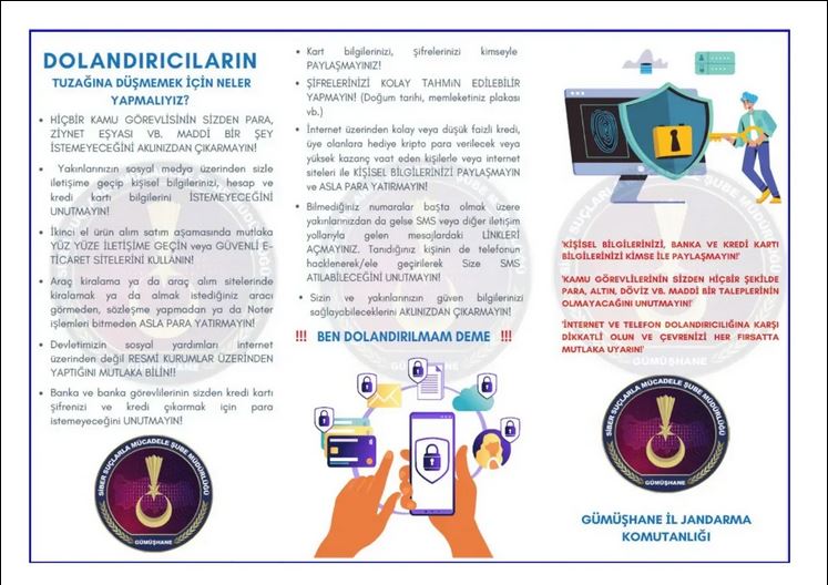 Gümüşhane İl Jandarma Komutanlığı Siber Suçlarla Mücadele Şube Müdürlüğü’ce dolandırıcılara karşı her türlü önlem alınıyor.