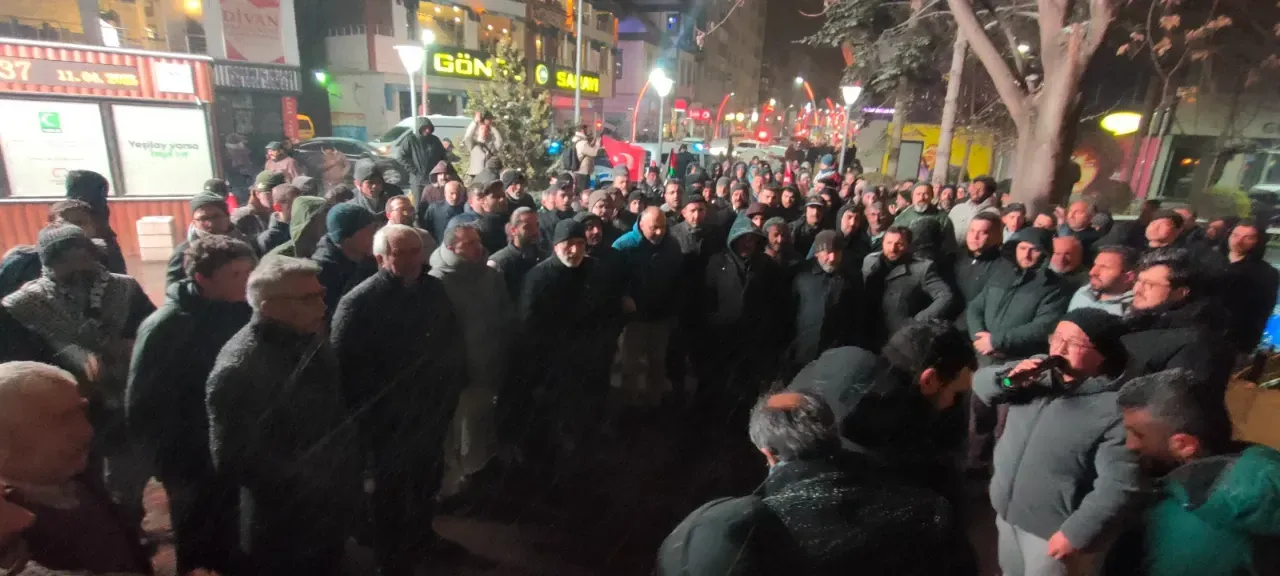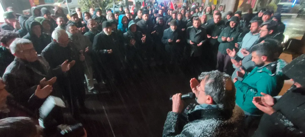 Filistin Alimler Birliğinin çağrısı yoğun kar yağışı altındaki Gümüşhane’de karşılık buldu. Saatler 22.00’ı gösterdiğinde Gümüşhaneliler Gazze’de devam eden vahşetin durması için hep bir ağızdan tekbir getirerek yürüyüş yaptı.