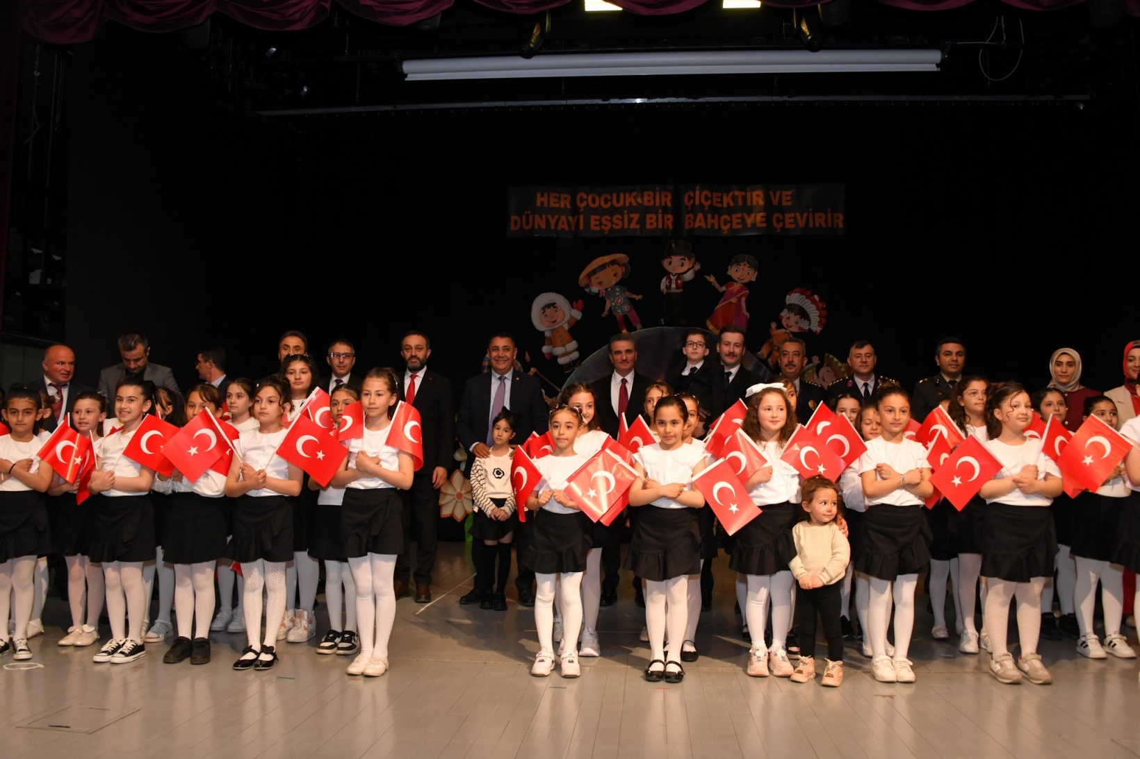 Öğrencilerin sergilediği şiir, tiyatro ve halk oyunları gösterileriyle bayram coşkusu salonu dolduran vatandaşlar tarafından büyük beğeniyle takip edilirken Vali Baruş, çocukların bayram sevincine ortak olarak tüm öğrencileri ve emeği geçen öğretmenleri tebrik etti.