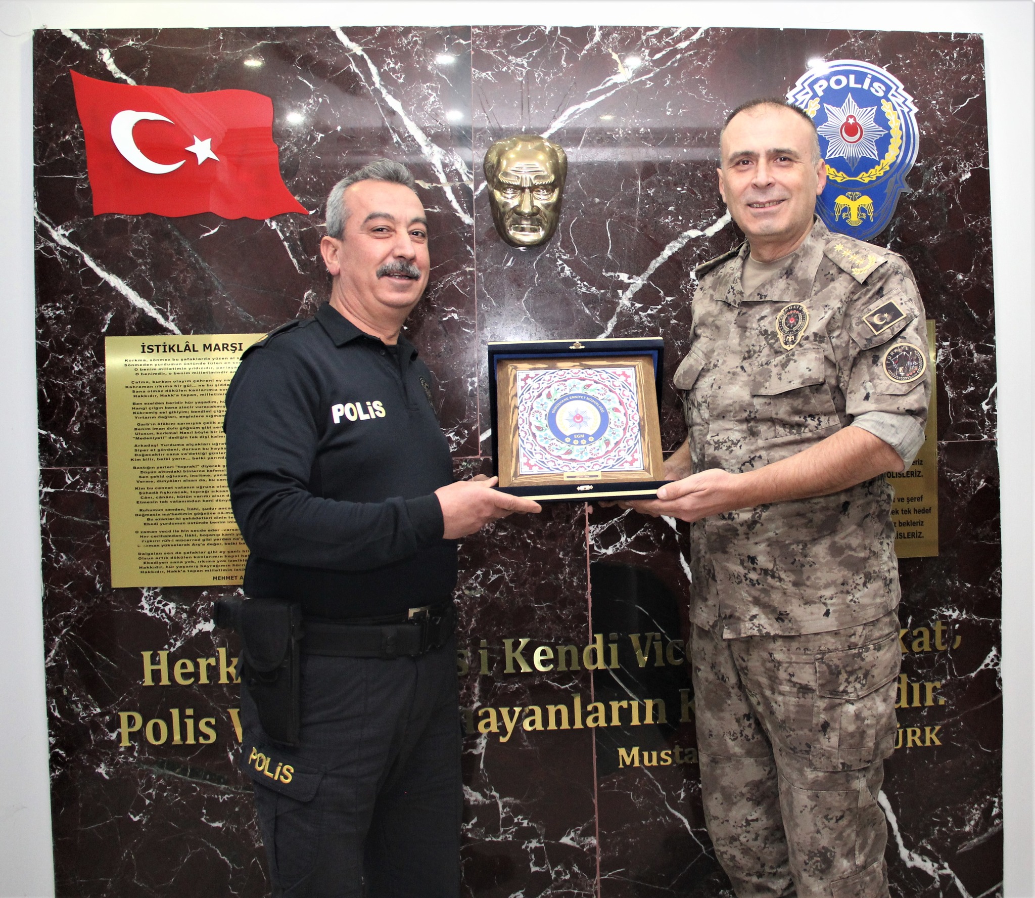 Emniyet Genel Müdürlüğü Özel Harekât Başkanı Ünsal Hayal ve beraberindeki heyet, Gümüşhane İl Emniyet Müdürü İsmail Karasakal’ı makamında ziyaret etti. Ziyarette İl Jandarma Komutanı Kd. Alb. Bilal Sarıdoğan da yer aldı.