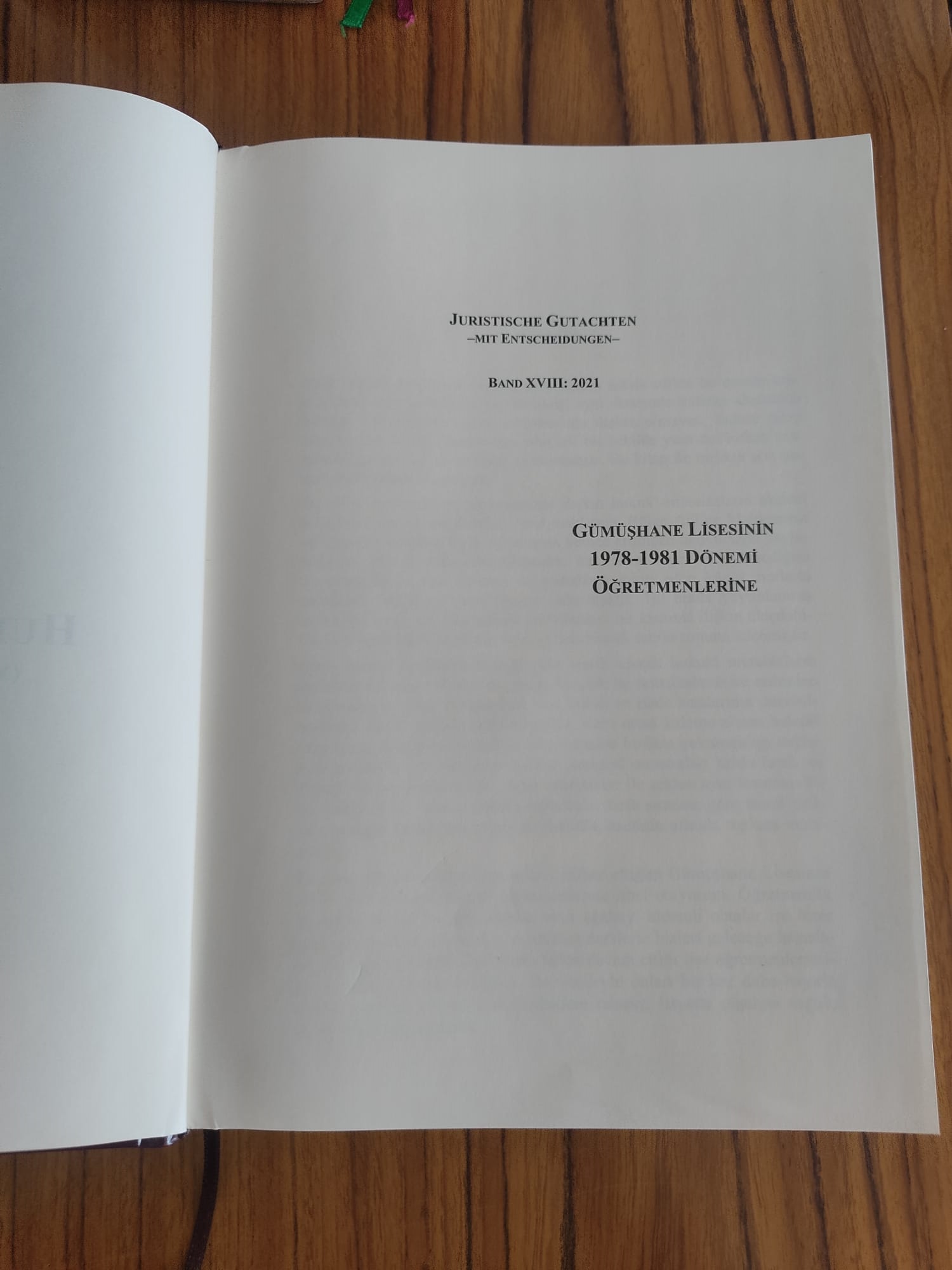 Prof.Dr. Abuzer Kendigelen, Ekim 2025 ayında birinci baskını yapan “HUKUKİ MÜTALÂLAR – Mahkeme Kararları İle Birlikte Cilt XVIII:2021” adlı kitabını Gümüşhane Lisesi Öğretmenlerine ithaf etti.