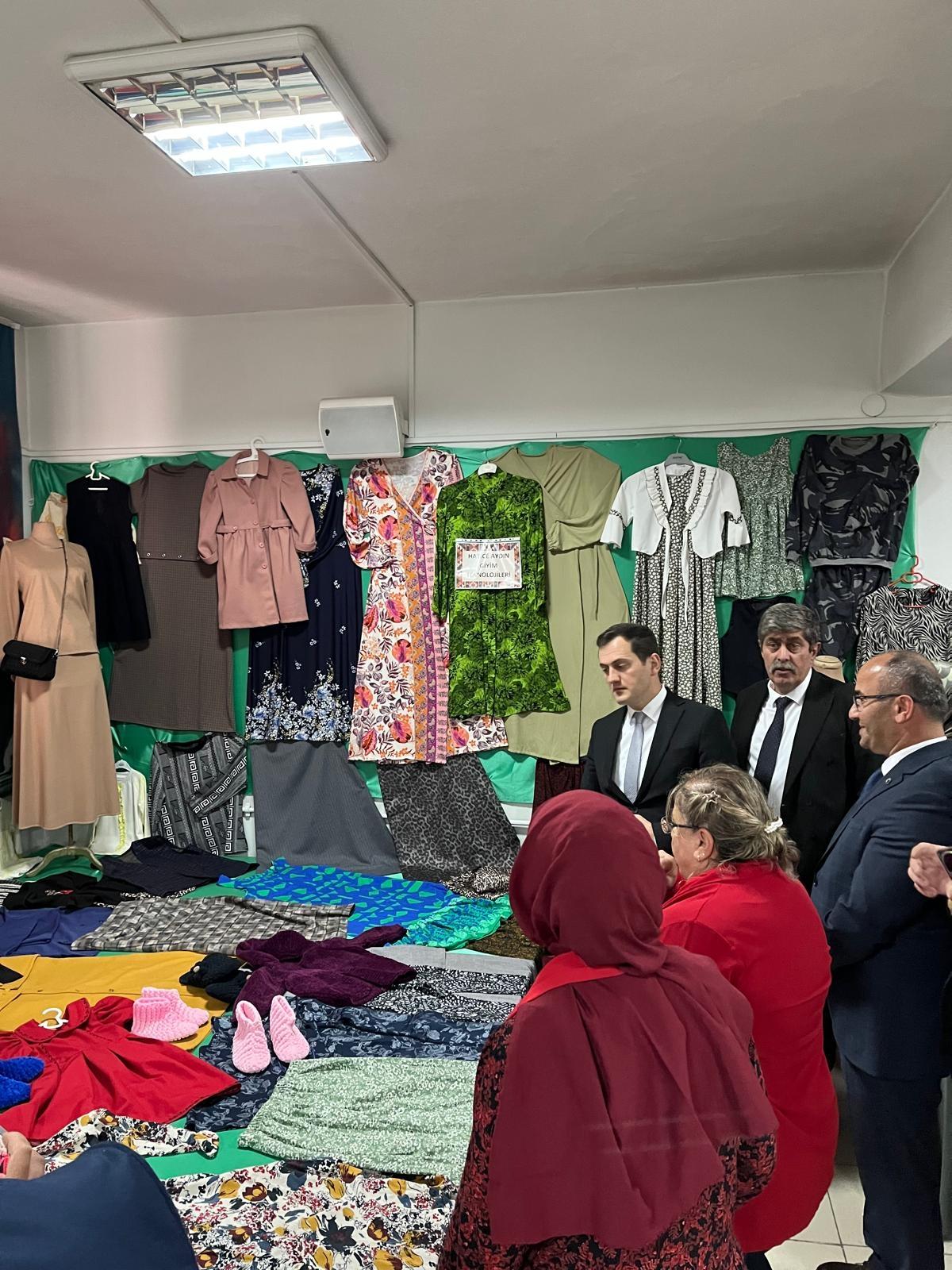 Sergide, kursiyerlerin bir yıllık emeğiyle hazırlanan el sanatları ürünleri ve unutulmaya yüz tutmuş sanat eserleri sergilendi.