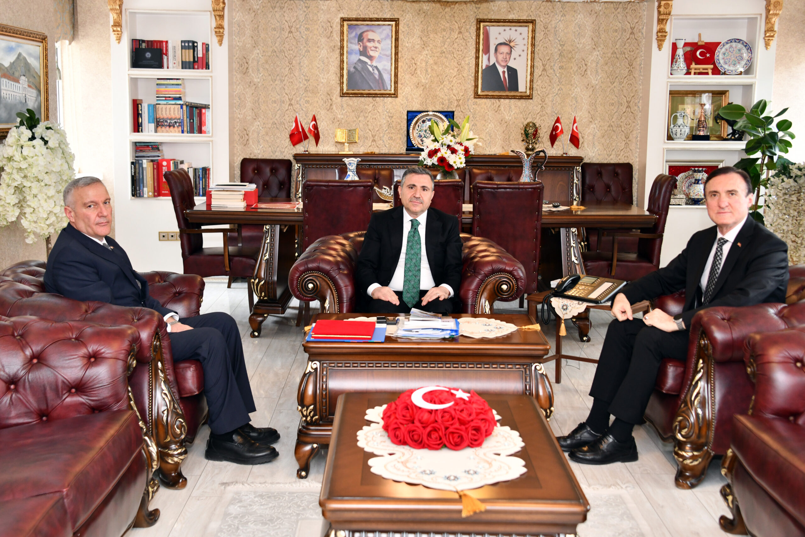 Türk Silahlı Kuvvetlerini Güçlendirme Vakfı Genel Müdür Yardımcısı Emekli Tuğgeneral Erhan Sipahioğlu ve Erzurum Bölge Temsilcisi Emekli Albay Ahmet Avcı, 3 Mart 2026 Cuma günü gerçekleşen Gümüşhane ziyaretleri kapsamında Vali Cevdet Atay’ı makamında ziyaret ettiler.
