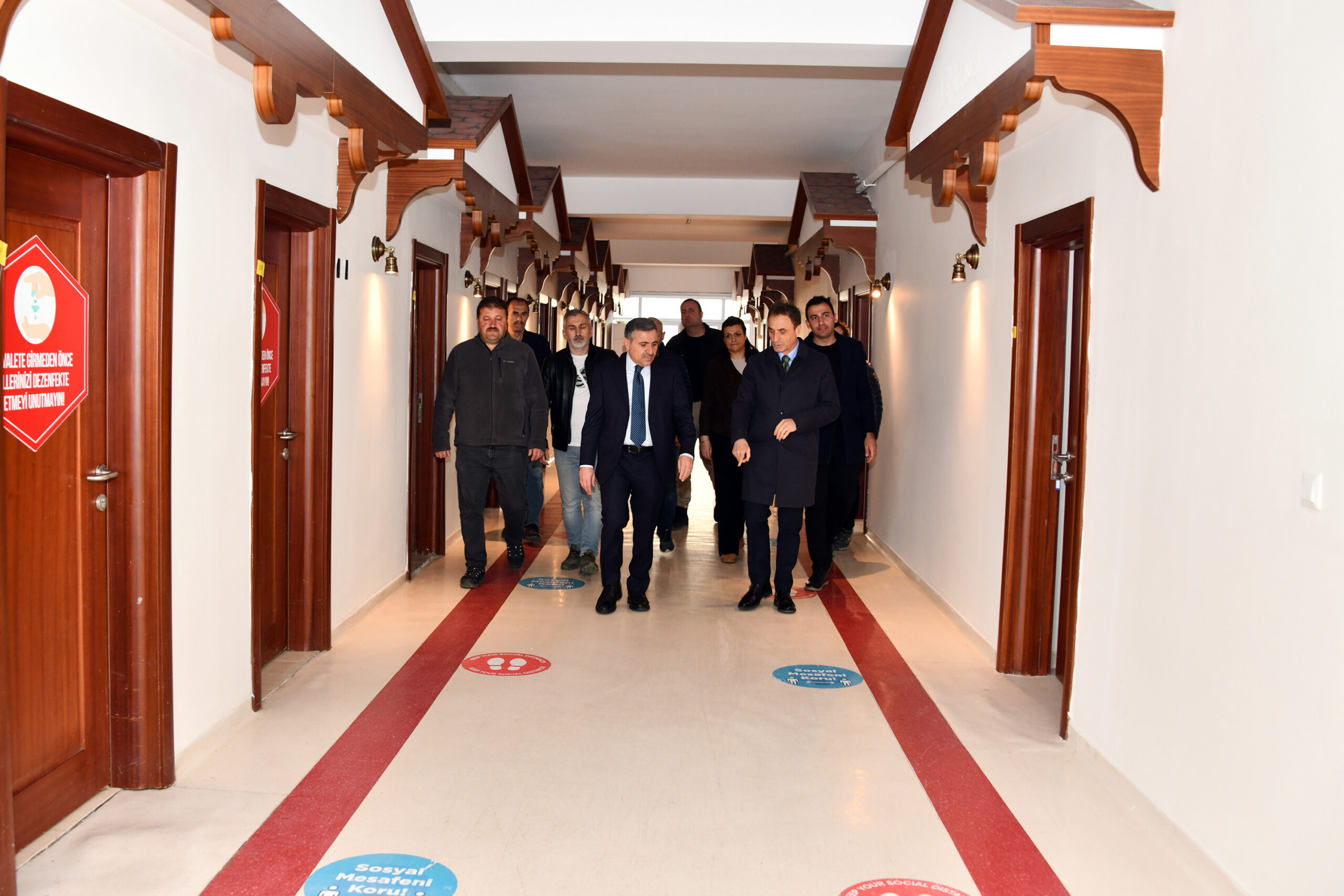 Vali Atay, resterasyonu ve donanımı tamamlanan ve önümüzdeki aylarda aktif olarak hizmet vermeye başlayacak olan Eğitim ve Uygulama Merkezi ile ilgili olarak İl Milli Eğitim Müdürü Şener Doğan ve diğer yetkililerden ayrıntılı bilgi aldı.