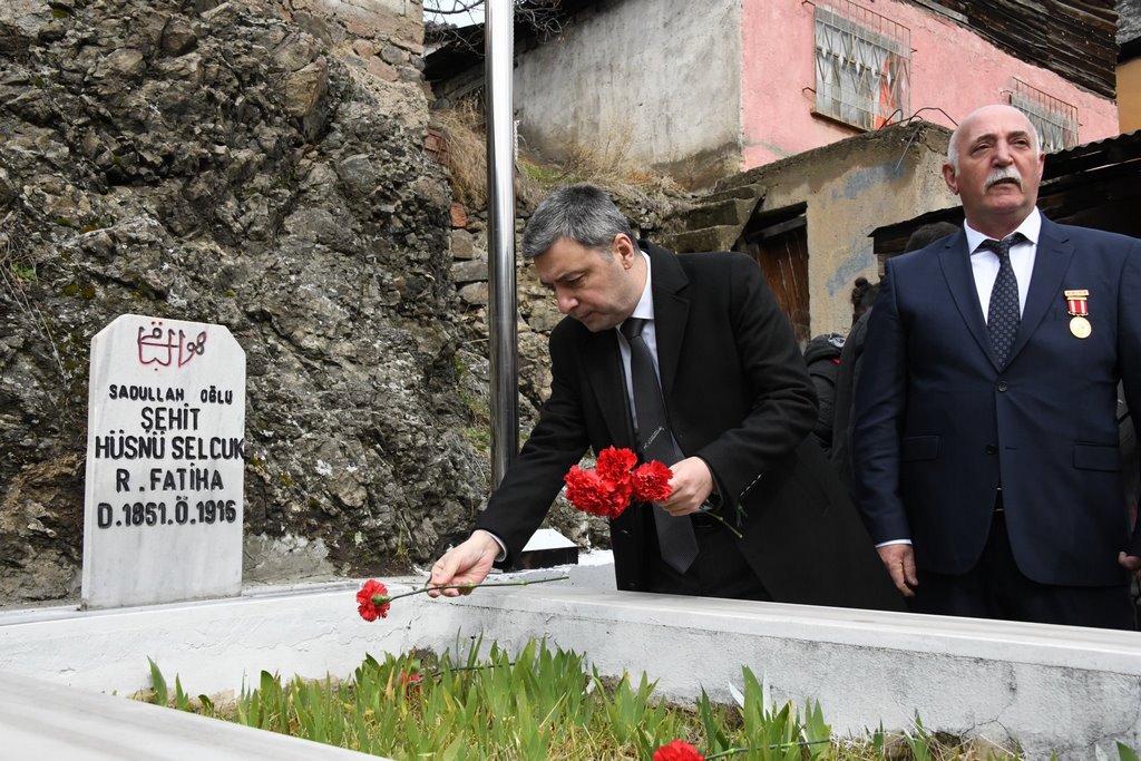 Gümüşhane Valisi Aydın Baruş ve Gümüşhane Belediye Başkanı Vedat Soner Başer, protokol üyeleri ile birlikte geçtiğimiz yıl Gümüşhane’nin düşman işgalinden kurtuluşunun 107. yıl dönümünde, 1916 yılında Ermeniler tarafından şehit edilen ve kabri Gümüşhane Merkez Hasanbey Mahallesi’nde bulunan Şehit Hüseyin Hüsnü Selçuk’un kabrini ziyaret ederek Kur’an-ı Kerim okutup dua etmişlerdi.