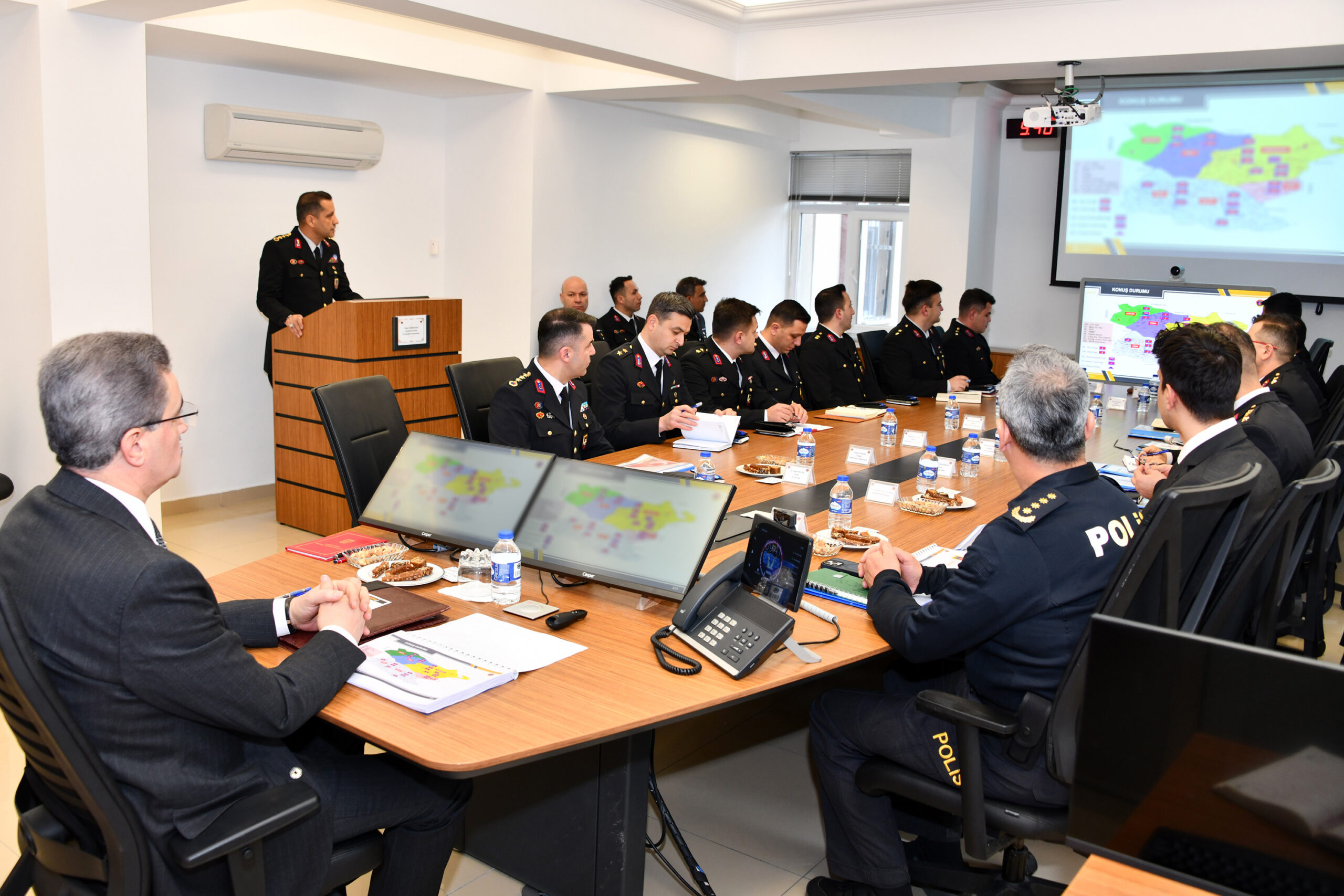 İl Jandarma Komutanı Kıdemli Albay Bilal Sarıdoğan ve beraberindeki yöneticilerden kurum bünyesinde yürütülen faaliyetlere ilişkin bilgi alan Valimiz, asayişin sağlanması, suçla mücadele, trafik güvenliği ve vatandaş odaklı hizmet anlayışının önemine dikkat çekti. Valimiz, vatandaşların can ve mal güvenliğini korumak adına 7/24 esasıyla görev yapan Jandarma teşkilatının huzur ve güvenliğin teminatı olduğunu vurgulayarak, fedakârca görev yapan tüm personele özverili çalışmalarından dolayı teşekkür etti.