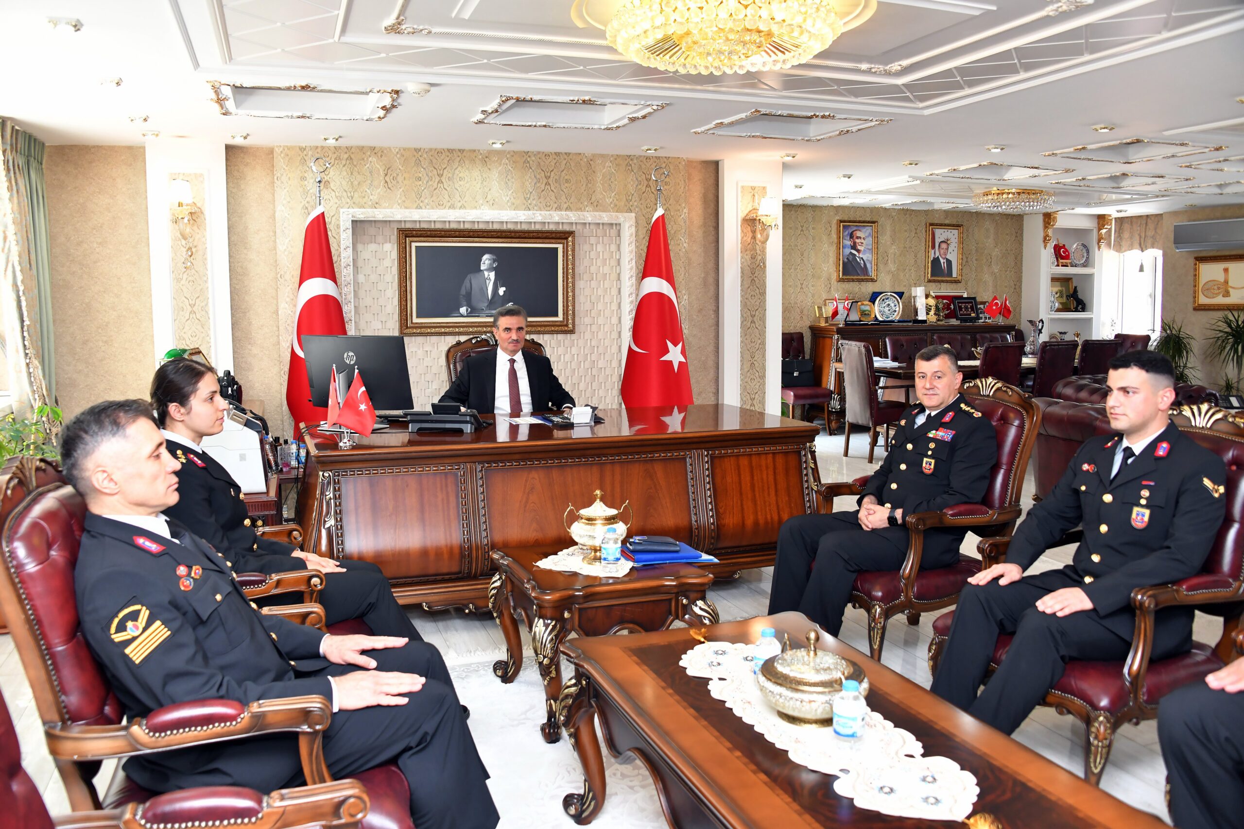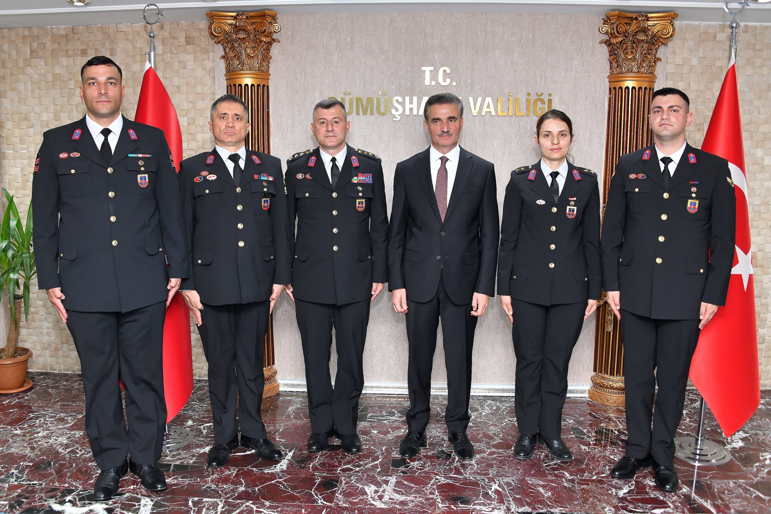 Jandarma Teşkilatı’nın 186. Kuruluş Yıl Dönümü dolayısıyla Gümüşhane İl Jandarma Komutanı Kd. Alb. Serhat Demiral ve beraberindeki heyet, Vali Aydın Baruş’u ziyaret etti.