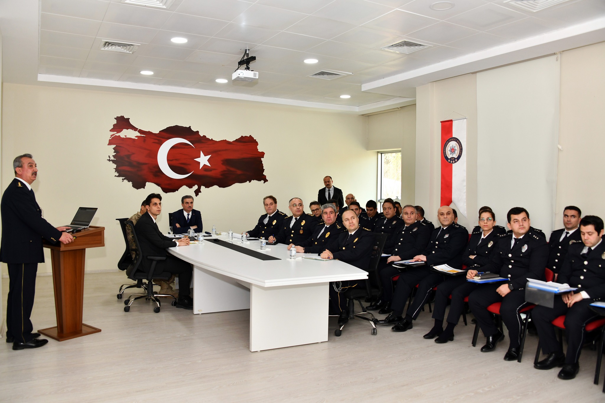 İl Emniyet Müdürü İsmail Karasakal’dan yıl boyunca meydana gelen asayiş ve trafik olayları, gerçekleştirilen müdahaleler, mevcut durum ve alınması gereken tedbirler hakkında kapsamlı bir brifing alan Vali Baruş, 2025 yılı boyunca ilin huzuru ve vatandaşların güvenliği için görev yapan tüm emniyet mensuplarına teşekkürlerini iletti.